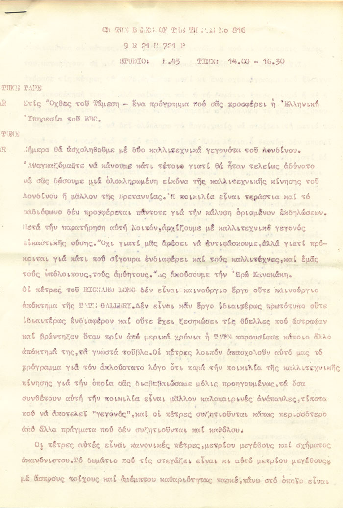 Εκπομπή του BBC - "ON THE BANKS OF THE THAMES" No 816